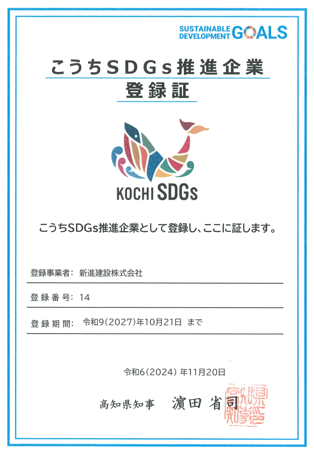 このたび、当社は「こうちSDGs推進企業登録証」を更新いたしました。