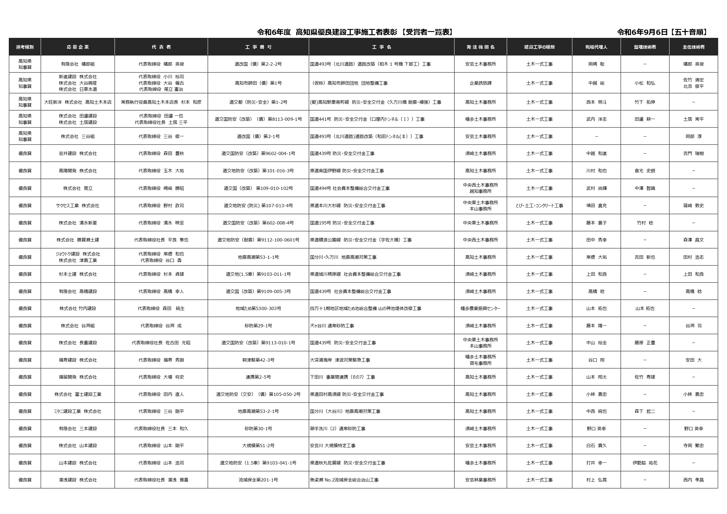 先日、令和6年度高知県優良建設工事施工者表彰の発表がありました。