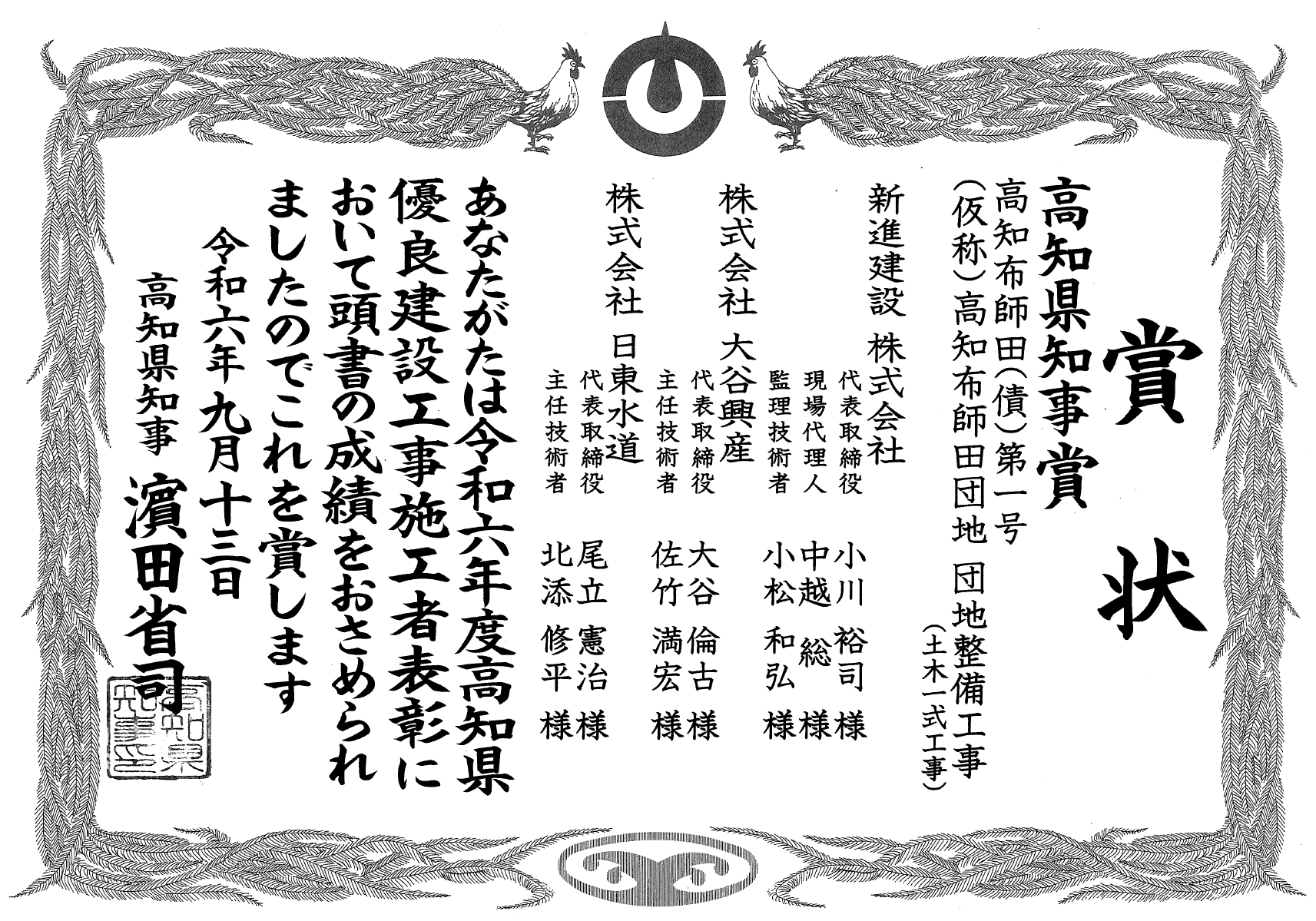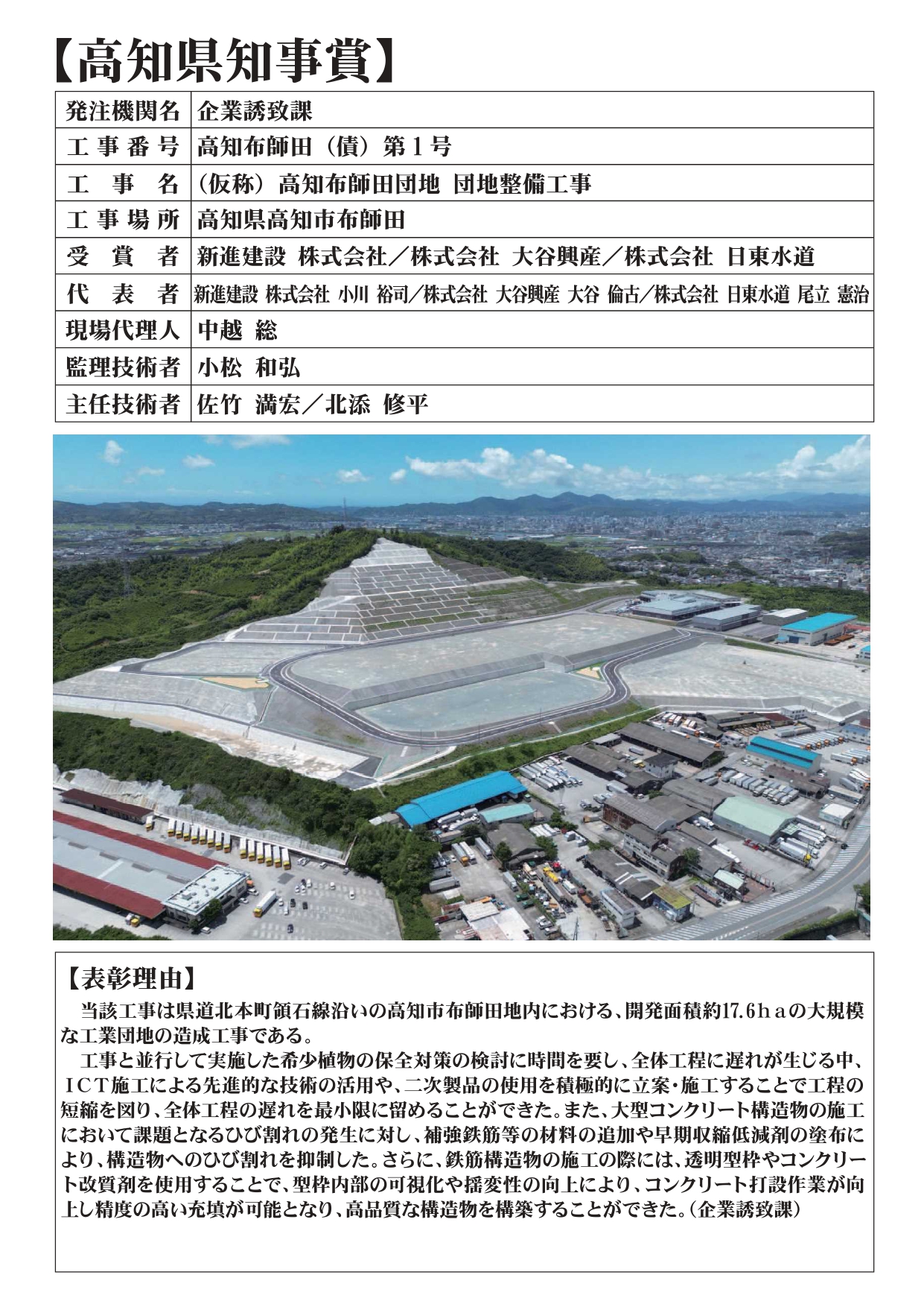 「(仮称)高知布師田団地 団地整備工事」が見事、高知県知事賞🏅を受賞しました!