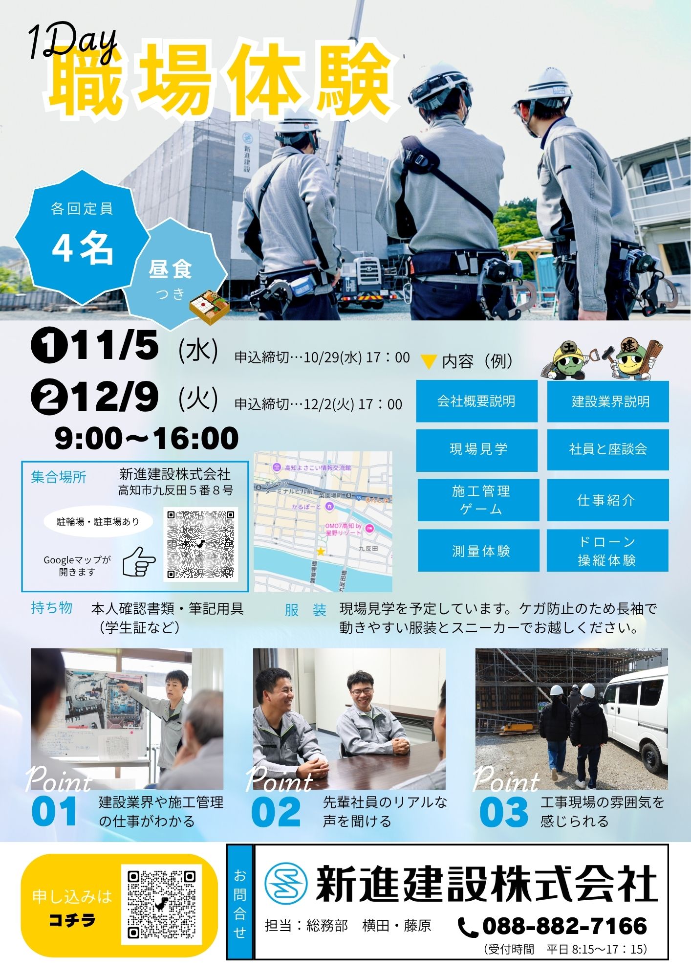 集合場所 | 新進建設株式会社 [ 高知市九反田5番8号 ] |